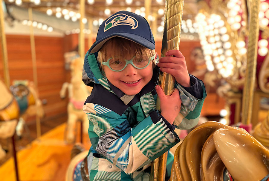 While Tove and I often act like kids, we are (believe it or not) adults. I’m pretty sure the carousel wasn’t built for folks like us — unless, of course, we had kids. A carousel is a carousel is a carousel to children. So, even though the Seattle waterfront carousel is jammed into a small arcade, kids are going to love the ride no matter what.